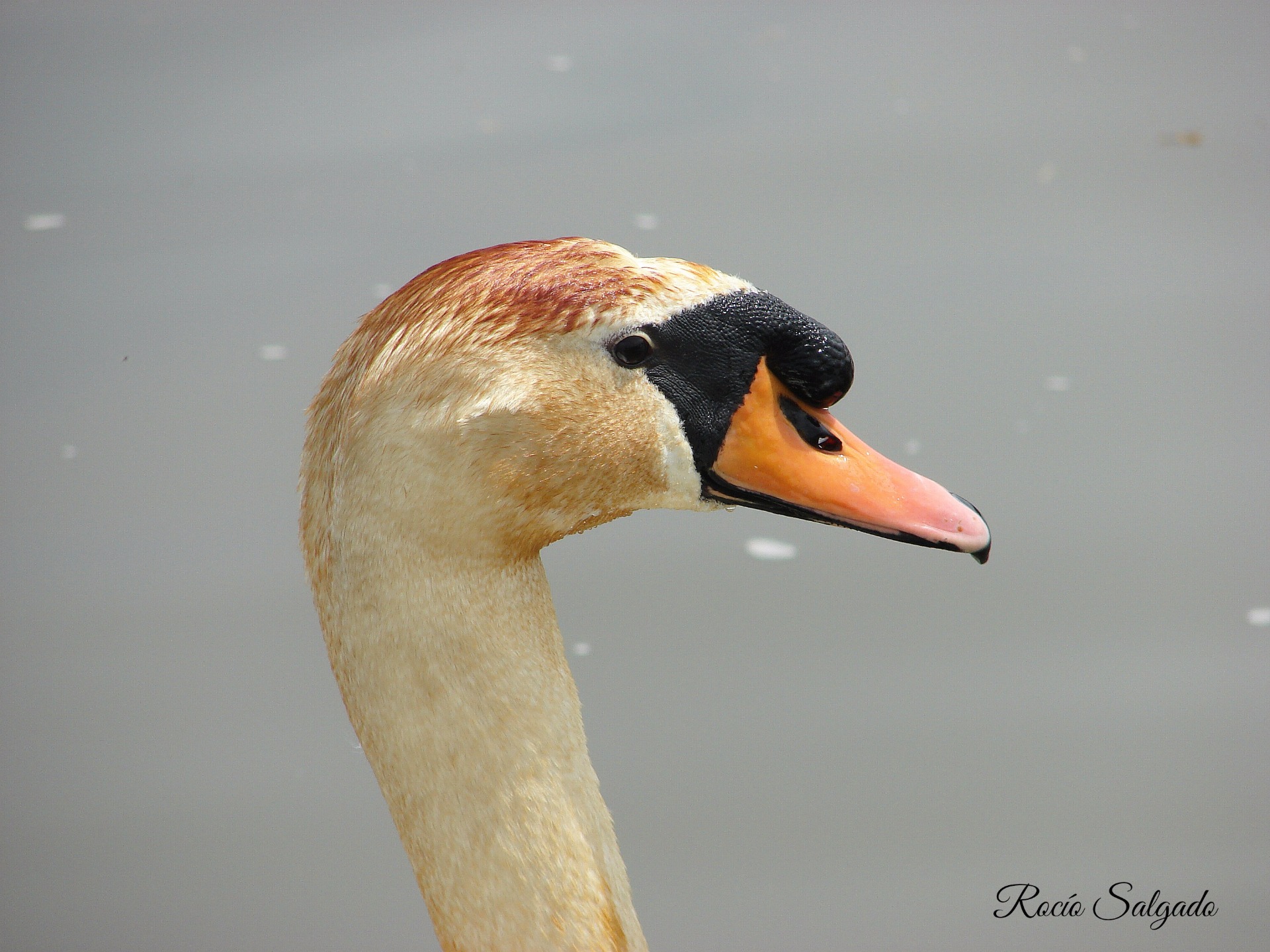 Cisne blanco, con un aspecto algo menos elegante cuando se encuentra fuera del agua