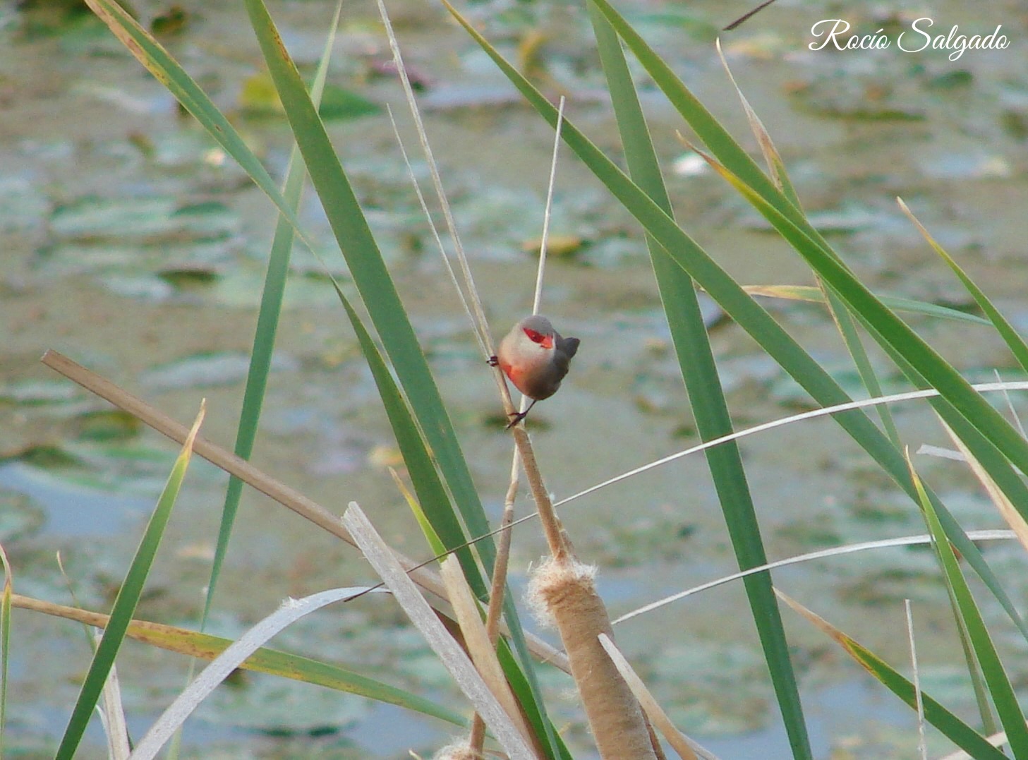Pico de coral entre la vegetación palustre en el Parque del río Guadiana